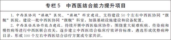 ——中医药服务体系进一步健全。融预防保健、疾病治疗和康复于一体的中医药服务体系逐步健全,中医药基层服务能力持续提升,中西医结合服务水平不断提高,中医药参与新发突发传染病防治和公共卫生事件应急处置能力显著增强。
