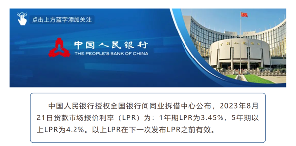 8月21日,人民银行授权全国银行间同业拆借中心公布了新一期贷款市场报价利率(LPR)。其中,1年期LPR为3.45%,上月为3.55%;5年期以上LPR为4.2%,上月为4.2%。1年期LPR较上月下降10个基点。