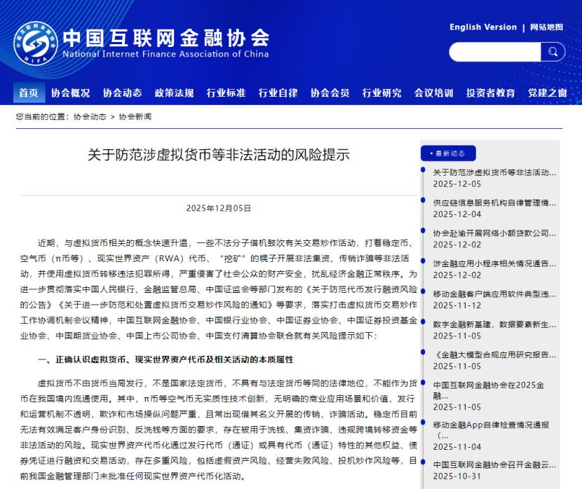 七家协会要求,各会员单位应多方位开展虚拟货币、现实世界资产代币风险提示和警示教育,提醒社会公众明辨风险、远离非法活动。