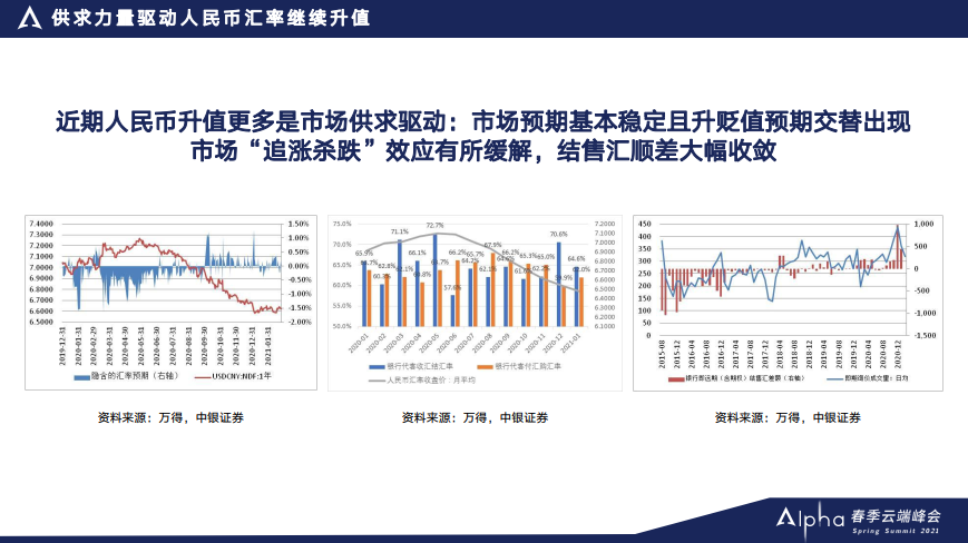 所以从这些数据我们可以得出基本判断,今年以来的人民币升值主要是供求驱动,而不是预期驱动。