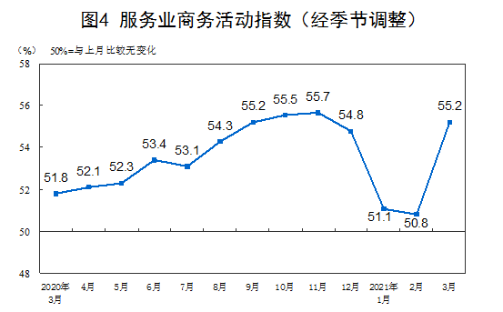 国家统计局服务业调查中心高级统计师赵庆河表示,春节过后,企业生产加快恢复,3月份制造业景气明显回升。