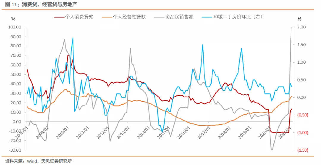 天风证券认为,对于信用扩张的影响,难点在于测算经营贷违规流入房地产的具体规模。当前银行的自查结果显示的问题贷款的占比,远逊于实际比例。实际上,经营贷违规流入房地产的具体规模难以测算,问题的关键还在于监管执行力度。