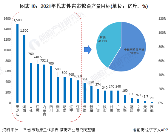 2021年各地政府工作报告除公布了上述地区经济增长及居民收入和消费等地区发展重点关注指标外,多个省市对2021年农业发展及粮食安全的具体目标做详细的分析。