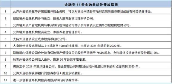 2019年7月,金融委办公室发布了11条金融业对外开放的措施: