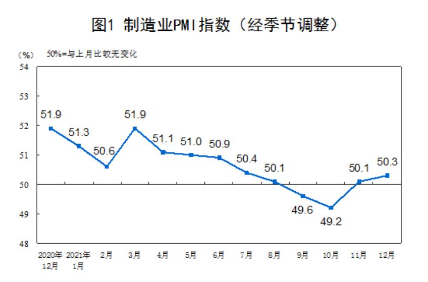 (原标题:12月制造业PMI为50.3%,比上月上升0.2个百分点)