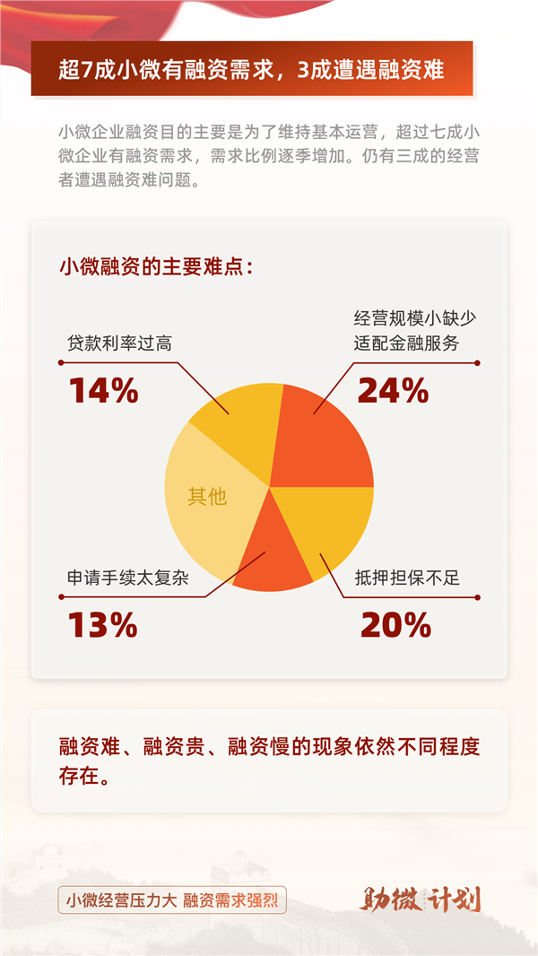 据了解,为缓解小微融资难题,自2020年以来,全国工商联会同多家行业协会,以及工商银行、中国银行、农业发展银行、平安银行和网商银行等多家金融机构,连续两年开展“助微计划”,助力小微复工复产、健康发展。