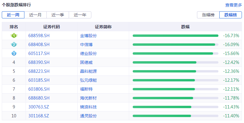 个股涨跌幅