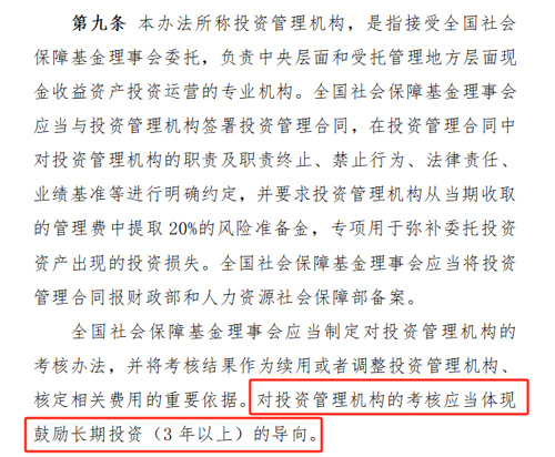 5、《办法》强调,对投资管理机构的考核应当体现鼓励长期投资(3年以上)的导向。