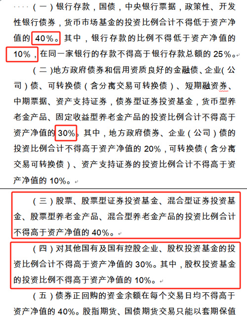 3、除对划转企业及其控股企业增资外,中央层面和全国社会保障基金理事会受托管理的地方层面现金收益投资比例,权益类资产合计投资比例最高为40%。