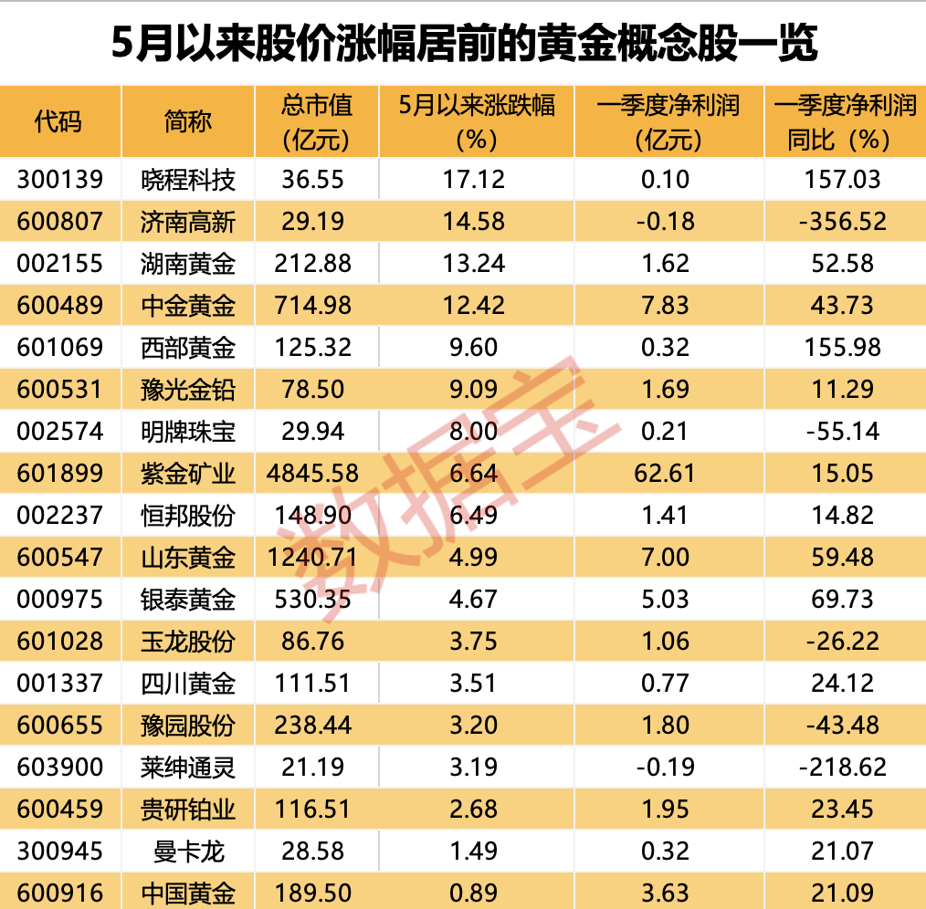 黄金概念股5月以来跑赢大盘