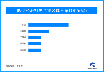 从地域分布来看,广东、山东、江苏以及安徽(并列),四地低空经济相关企业数量位居前列,分别拥有1.1万余家、5500余家以及3500余家;