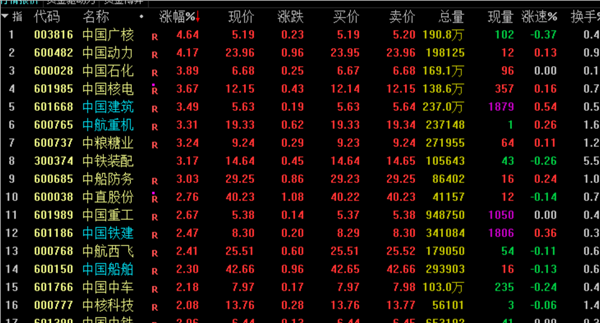 7月24日,中字头股票午后走高,中国广核、中国动力涨超4%,中国石化、中国核电、中国建筑、中航重机、中粮糖业、中铁装配涨超3%。