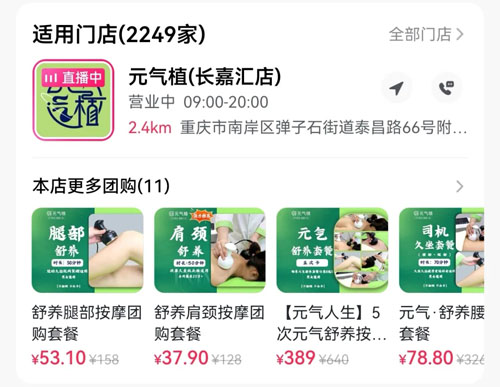 本质视点小编发现,在元气植理疗项目的下面,会显示离小编定位距离最近的店铺,可以通过上面的电话预约消费。