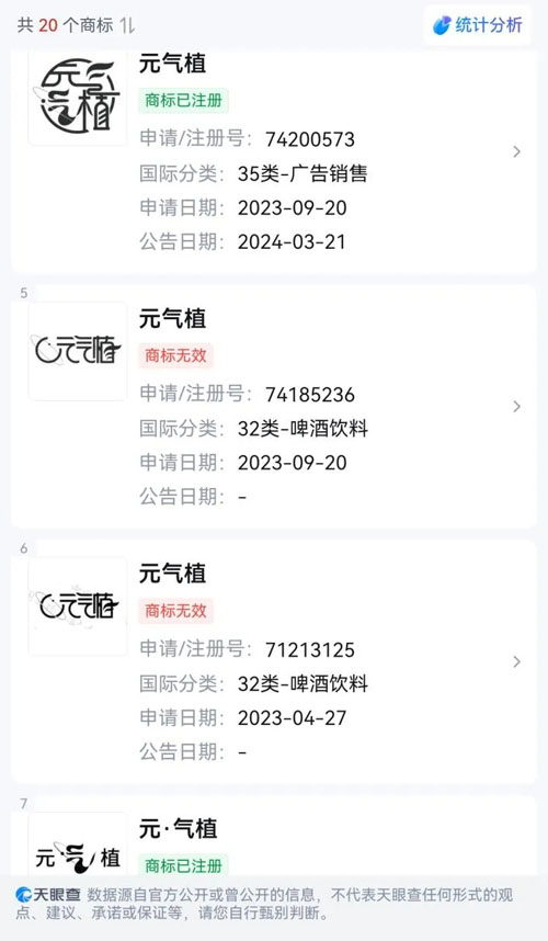 名月公司拥有多个元气植相关商标。