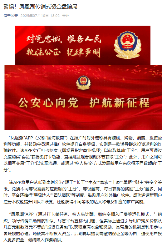 镇宁公安再发预警!警惕!凤凰潮传销式资金盘骗局