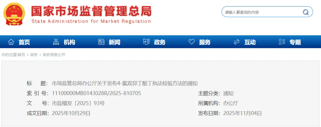 市场监管总局办公厅关于发布4-氯双异丁酚丁执法检验方法的通知