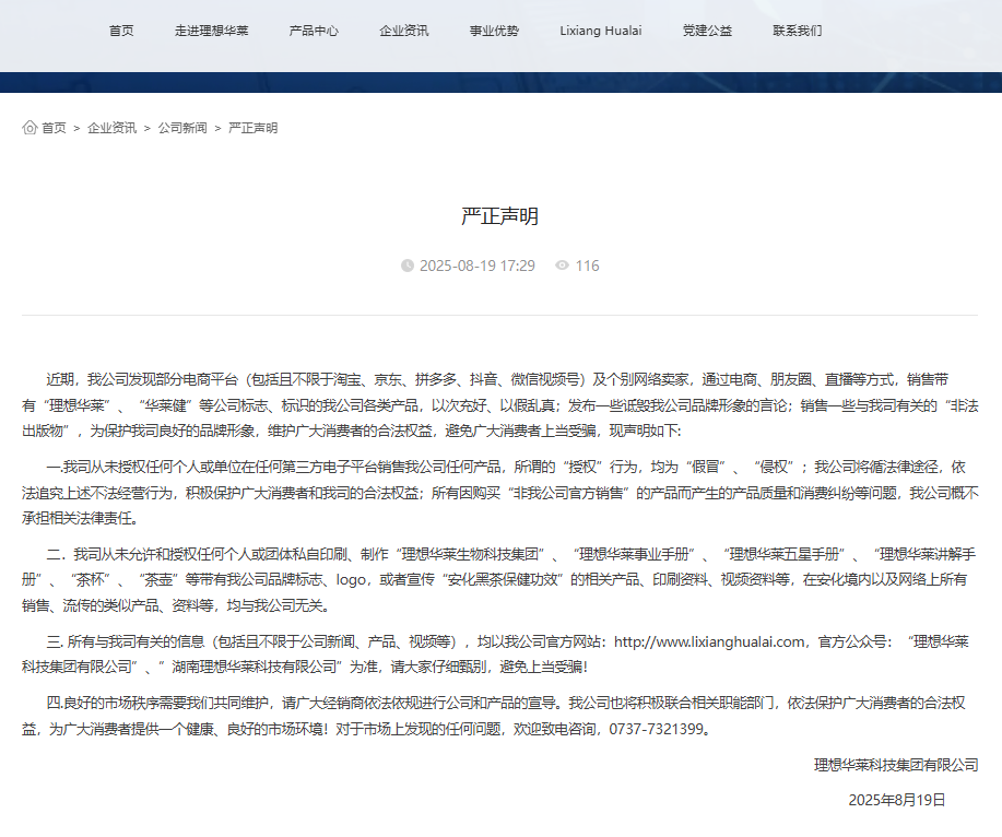 理想华莱发布严正声明