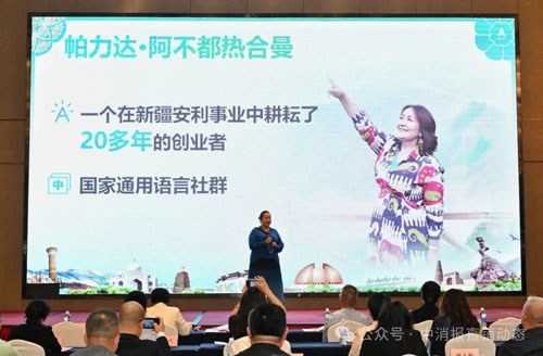 在新疆安利深耕20余年的帕力达,2022年初发起国家通用语言学习社群,已举办33期吸引500人次参与。通过“线上打卡+线下交流”模式,涌现全家共学、互助学习等温暖场景,帮助伙伴实现从“翻译后表达”到“直接用国通语思考”的转变,持续响应国通语的普及倡导。