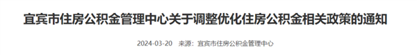 3月20日,宜宾市公积金管理中心发布《关于调整优化公积金相关政策的通知》,自4月1日起执行。
